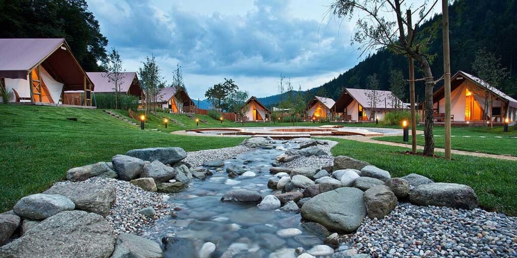 2. Herbal Glamping Resort Ljubno: A perfect harmony of nature and luxury on the Savinja River.